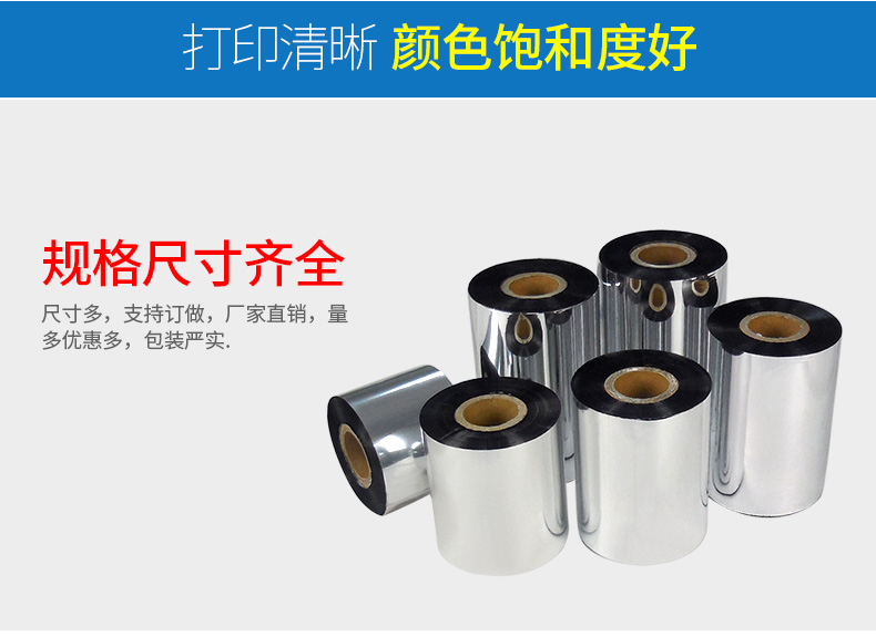 规格齐全,物美价优, 打印清晰 防刮不掉色 足米足量,腊基碳带,混合碳带,全树脂碳带,适用各种材料打印
